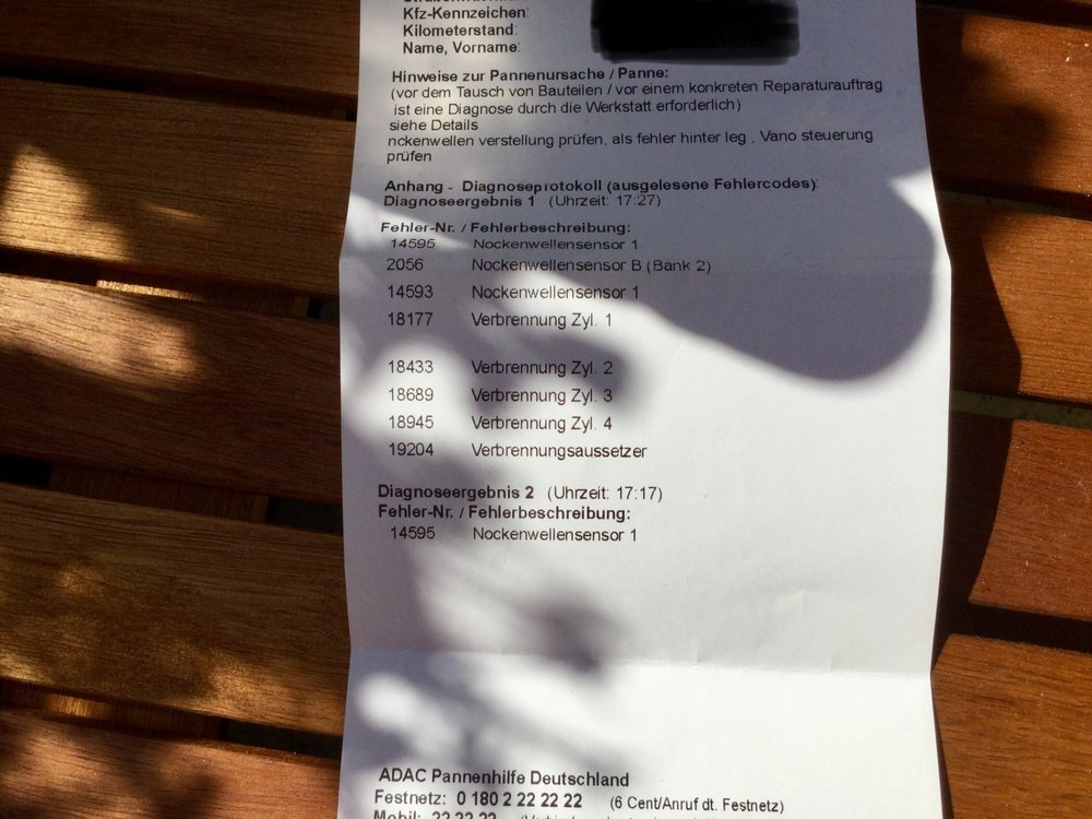 Habe den ADAC gerufen und die haben folgendes Fehlerprotokoll ausgedruckt: