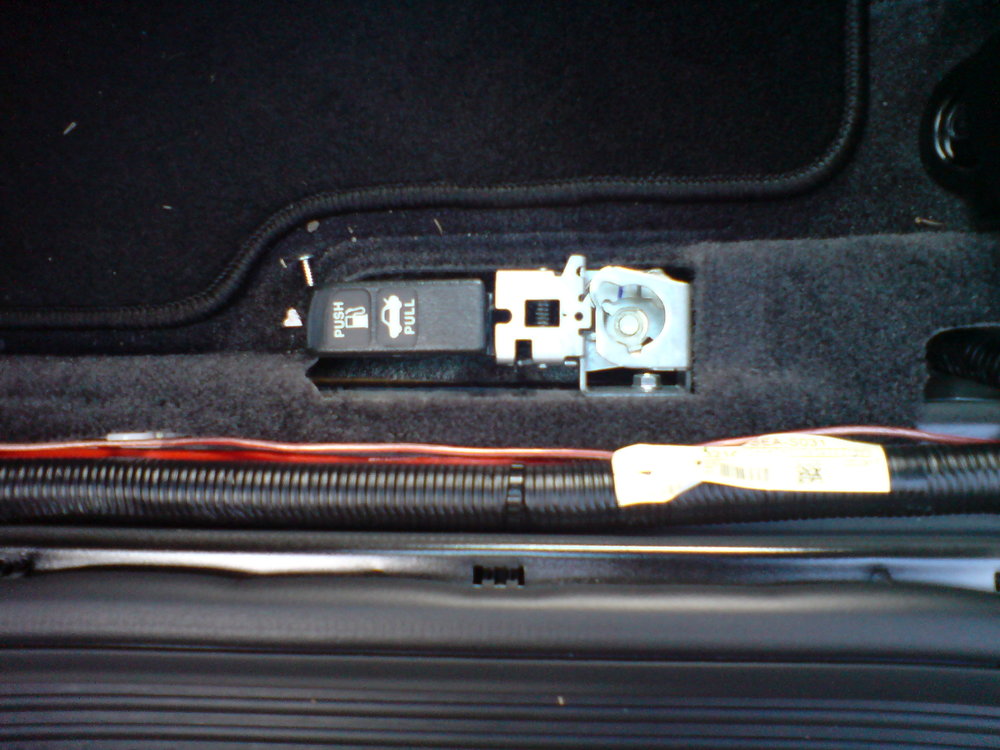 zu 3.) Auf der Fahrerseite. Am Hebel zum Tankdeckel und Kofferraum öffnen: Die Kappe überm Schloss ausclipsen. Die Schraube lösen. Schloss in Stellung "ZU" drehen und Verkleidung nach oben ausclipsen.