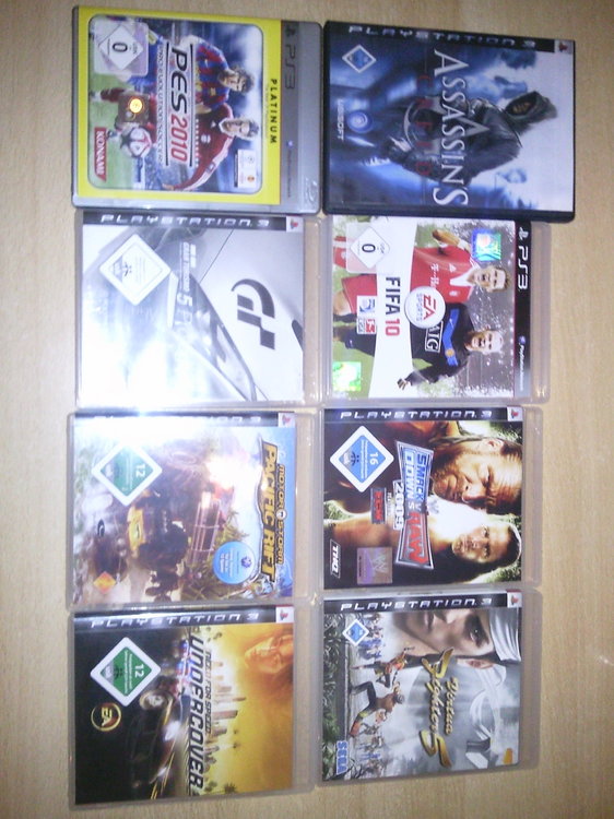 Hi Verkaufe hie ein par Playstetion3 spiele die ICH nicht mehr Spiele für je 15€+3€ Vers., alle außer Assassin´s Creed sind mit Anleitung und auf Deutsch,wie Neu und ohne Kratzer (1-ASSASSIN´s CREED) ( 2-Virtual Fighter5) (3-SMACK DOWN Vs RAW 2009Verkauft) (4-NEDD FOR SPEED UNDERCOVER) (5-MOTOR STORM PACIFIC RIFT) (6-GRAN TURISMO5 Prologue) (7-PRO EVOLUTION SOCCER 2010) (8-FIFA 10Verkauft) bei interesse bitte PN