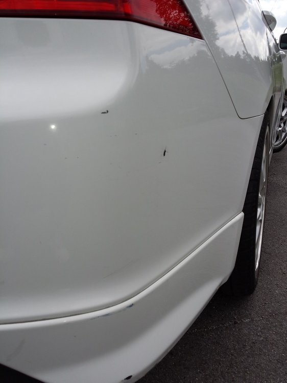 alte kenzeichen platte abgebaut :kotz:, die vier heslichen 35mm Löcher die dann zu sehen sind mit vier auf die gleiche größe geschnittenen Plastik vom alten Stoßstange drauf gemacht und von innen und außen mit einem Lötkolben auf die Stoßstange geschweißt. Spachtel drauf und dann lackiert und fertig ist. das Kennzeichen passt optimal im unteren bereich, hab mir aus 3mm aluplatte in der Größe vom Kennzeichen eine platte ausgesägt und zwei streifen auch aus alu nach hinten zur Stoßstange wo zwei punkte im oberen bereich schon vorhanden sind mit verschraubt, natürlich den knick in der mitte nicht vergessen :D