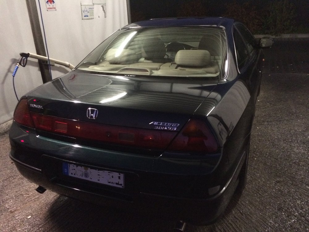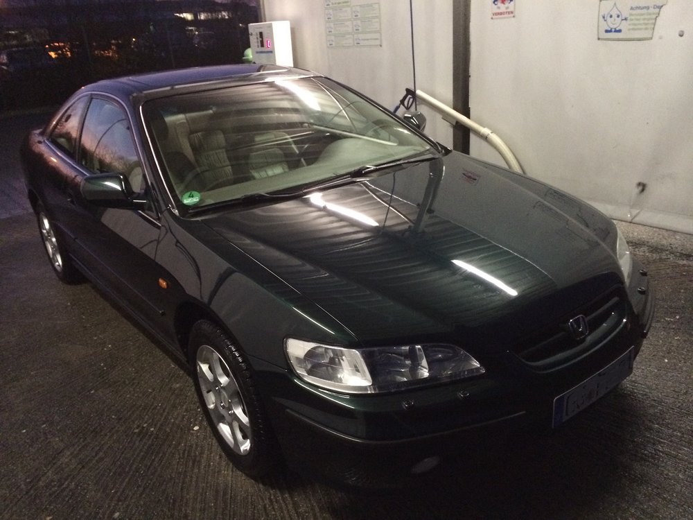 Ich biete mein Accord Coupe zum Verkauf an: CG2 mit 3.0V6 Motor EZ 09/2001 195.000 km HU: 01/2015 Farbe: Grün metallic Innenausstattung: Vollleder Farbe der Innenausstattung: Beige / Wurzelholz Wunderschönes Honda Accord Coupe (Facelift) in gepflegtem Zustand aus seriösem Vorbesitz. Absolute Vollausstattung mit Nebelscheinwerfern vorne + BOSE Soundsystem inkl. CD-Wechsler. Scheckheftgepflegt bis 180.000km, Zahnriemenwechsel bei 115.000km erfolgt, Nächster Wechseltermin bei 230.000km. Automatik schaltet butterweich, Motor läuft wie ein Uhrwerk. Lederausstattung in Bestzustand, keine gerissenen Polster oder abgegriffenes Interieur! Lack ebenfalls in hervorragenden Zustand, eine kleine Ausbesserung am Fahrertürschloss (Schlüsselkratzer). Absoluter Originalzustand! 8-fach bereift mit Alufelgen für Sommer- und Winterreifen (Michelin + Semperit) mit genügend Profiltiefe. BILDER folgen! Preis: 2499 EUR Standort ist Nähe Frankfurt/Main. Anbebote bitte per PN.