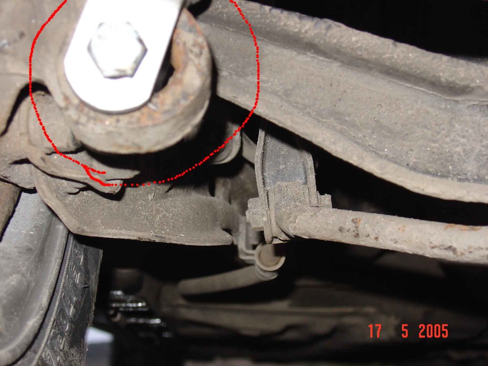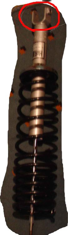 so das was rot ist, wird an der achse verschraubt und da dazwischen ist daNN der gummi also das ist ein metallring+gummi+metall (WENN ICH DAS RICHTIG VERSTANDEN HAB)und alles vulkanisiert damit das hält su und das ist kaputt schau einfach mal unter dein acci wenn de zeit hast schau dort wo der dämpfer mit der achse verschraubt ist da dazwischen zwischen den dämpferteilen ( rot markiert) ist das lager weist du jetzt was ich mein würd ja ein foto machen aber es regnet wie sau :motz: -