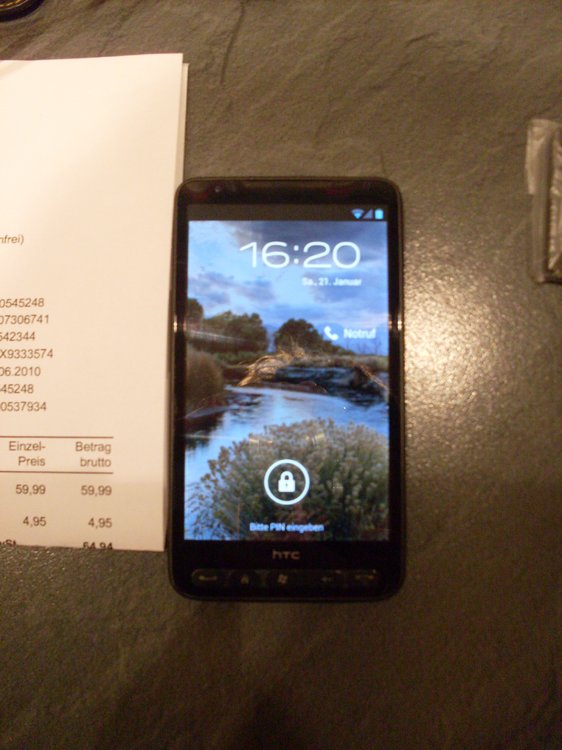 Ich verkaufe mein HTC HD2 Lieferumfang: Gerät HD2 Ladegerät (3 Teilig) Originalverpackung 8GB SD-Karte (original sind nur 2GB) 2 Accus (1ner ist nicht mal einen Monat alt) Kopfhörer Rechnung noch 6 Monate Garantie 2x Tasche Sie können, entscheiden welches Betriebssysthem Sie haben wollen Momentan läuft Android 4.0 (IceCreamSandwich) aber nur als Betha Version und deshalb noch nicht vollständig stabil. Wenn Sie sich auskennen können Sie nach erscheinen der endgültigen Version diese einfach noch mal Updaten (eigentlich ganz einfach wenn man sich ein bischen auskennt.) oder aber Sie können zwischen der originalen Windows 6.5 Version und Android 2.3.3 wählen, letztere hatte ich die ganze Zeit genutzt und diese läuft echt super und stabil, dazu gibt es noch die Navigon Navigations Software die auch ohne Internetverbindung funktioniert. Zustand: Das Handy befindet sich in absoluten Top Zustand, es hat 0 Kratzer auf dem Display da ich sehr sehr darauf achte. Nur an 2 Ecken sind zwei kleine Kratzer die man aber wirklich nur sieht wenn man ganz genau hinsieht. Ich erwähne es trotzdem. Wie gesagt das Handy ist Top gepflegt. Bei Fragen einfach schreiben Preis setz ich erstmal bei 200€ VHB an.