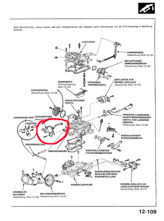 Moin, suche den Öffner für die Startautomatik nehme auch den ganzen Vergaser :D. Das Teil ist unten auf der Explosionszeichnung rot eingekreist. Eine einfache Unterdruckdose, in der Über eine Membran die Chokeklappe bei kaltem Motor geöffnet wird. Leider ist der Öffner nicht mehr über Honda als Ersatzteil lieferbar. Danke euch!
