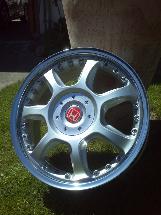 18 Zoller Ronal Felgen 4 Stück ohne Reifen. Es handelt sich um Ronal R40 mit dem Lochkreis 4x114,3 Die Felgen waren an meinen Honda Accord Coupe Cg4 montiert. angaben der Felgen: 7,5Jx18H2 ET 38 /KBA:45513. Die Felgen wurden am 22.02.2012 von MF Felgenveredelung neu aufgearbeitet Rechnung ist vorhanden. Es wurden folgende sachen dürchgeführt. 1- 4x Felgenbett poliert 2-2 Felgen Rundlaufinstandsetzung wegen unwucht alle 4 Felgen wurden auf rundlauf geprüft laufen alle wieder gerade. der preis dafür betrug sich auf ca.400€. sonst haben die Felgen in der mitte ganz leichte gebrauchtspuren aber nichts gravierendes das felgenbett sieht einfach nur super aus. Das Honda zeichen auf der Felgenkappe lässt sich auch entfernen. Habe leider kein gutachten für die Felgen, stellt aber kein problem dar kann man sich ganz einfach für 25€ bei Ronal bestellen. Die Felgen sollten wenn möglich abgeholt werden. ------------------ VB 470 euro ----------------- Neuer Preis VB 440 euro
