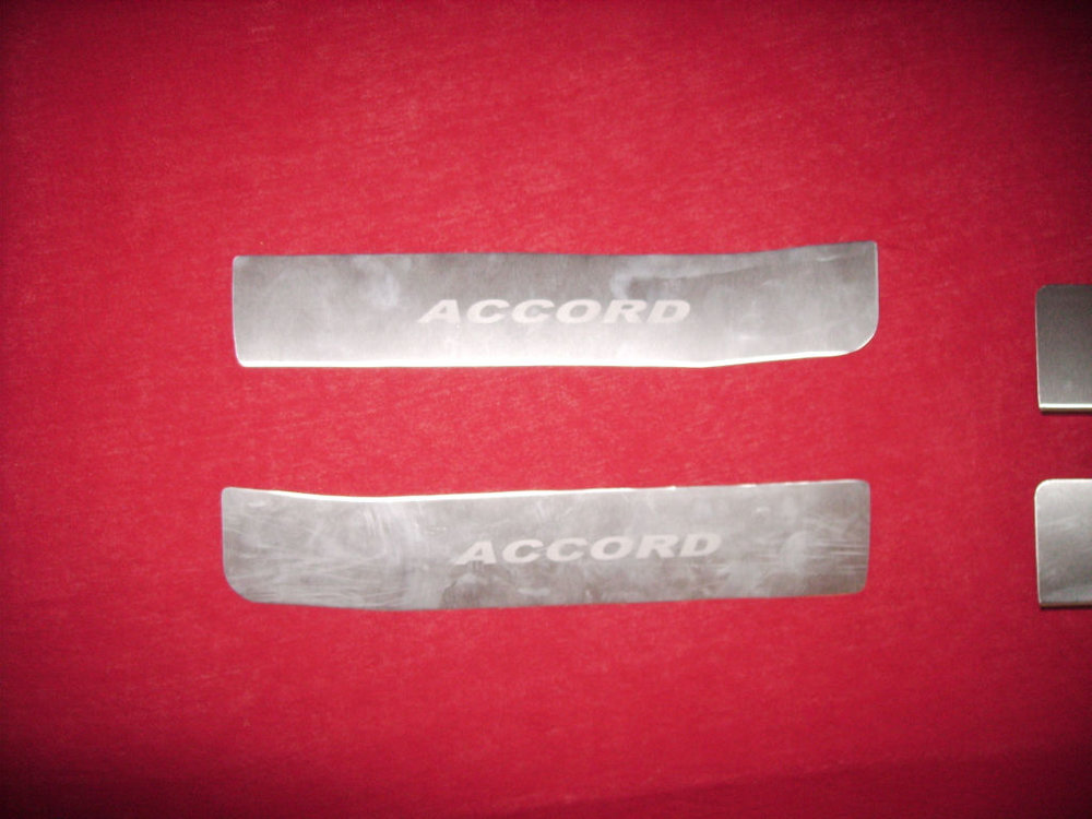 Hi Verkaufe hier Edelstahl Einstiegsleisten (Zubehör, kein Original Honda), Aber Passgenauigkeit scheint trotzdem sehr gut zu sein. Matt und mit Accord Schirftzug Maße der vorderen Lesiten Länge: 64cm (bzw 61cm) Gesamtbreite: 6,5cm (bzw 7,5cm) Breite bis zur Kante: 6.3cm (bzw 7,3cm) Maße der hintern Leisten: Länge: 37cm Gesamtbreite: 6,5cm keine Abkantung vorhanden Also bitte vorher schauen ob die bei auch passen. Die vorderen Leisten wären auch noch mit anderen Maßen vorhanden...........kann natürlich auch alle vorderen mitschicken und ihr könnt dann schauen welche euch am besten gefällt Preis 50€ + Versand Up!!! Keiner Interesse? noch zu haben up!!