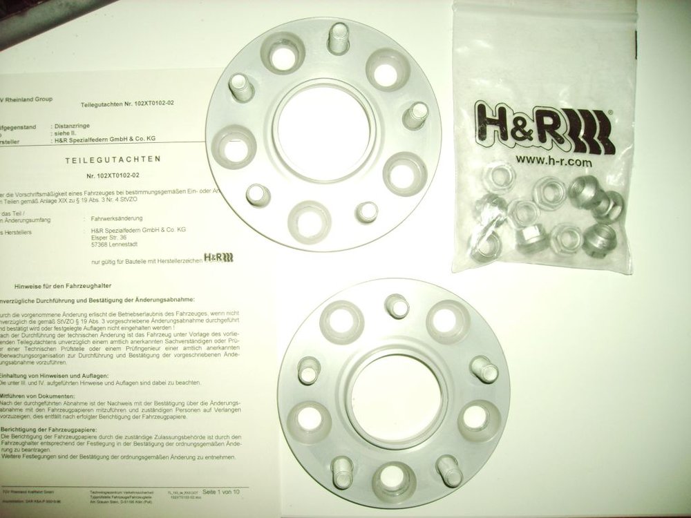Hi Verkaufe hier die H&R Spurverbreiterung 3065641, da diese doch nicht gebraucht wird. Es handelt sich dabei um die 30mm Version mit feststehenden Bolzen. Die Spurverbreiterung war nur kurz für den Showroom montiert……..also so gut wie keine Spuren zu sehen…..Aufkleber sind noch drauf......Neuwertig Das Gutachten von H&R ist Offiziell nur für den CRZ!!!! Die Verwendung bei Stahlfelgen ist nicht erlaubt !!! Lieferumfang: 2x Spurplatten 10x Spezialmuttern 1x Montageanleitung Neu kosten die Platten 100€ Nun 80€ inkl Versand