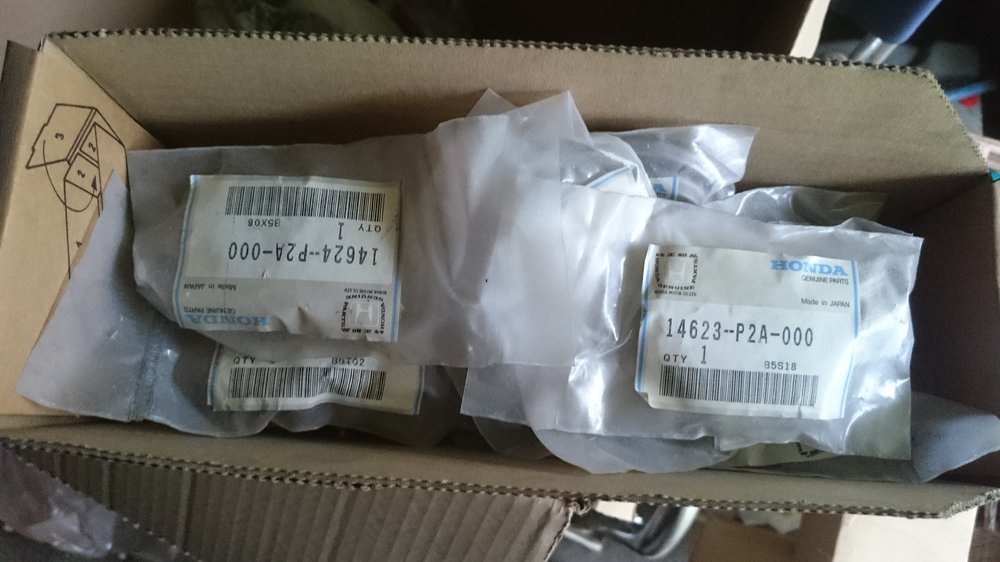 19. Hallo Forum, Ich habe wiedermal ein Lager aufgekauft und werde hier die Teile nach und nach anbieten. Die Teile können käuflich oder gegen Tausch erworben werden. Alle Preise sind verhandelbar. Alle Teile können auch verschickt werden. Wen jemand etwas haben möchte, schickt mir bitte eine PN, sonst verliert man hier schnell die Übersicht. Bitte keine Beiträge rein schreiben. Zwei neue OEM Heckklappendämpfer. Die Dämpfer passen beim Accord Tourer 03-08. Preis 100,- Euro Spurstangeendstück Accord CG,CH 99-02. Preis 25,- Euro Dichtungen Zylinderdeckel 12030-PT2-000 Accord 93-94, Prelude 92-01, 2,0l; 2,3l 15,- Euro 12341-P13-000 Accord 96,97, 99-02; Prelude 93-01 DOHC Vtec 10,- Euro 12341-PH3-000 Accord 87-88, Prelude 86-87 DOHC 16V. 10,- Euro Keilrippenriemen http://img4web.com/g/WYW5M 31110-P0B-A12 LiMa: Accord 96-98, Aerodeck 96-97, Coupe 96-99 (2,0l) 10,- Euro 31110-P44-G03 LiMa: Accord 94' 96' (1,8; 2,0; 2,3l) 10,- Euro 31110-P0B-A01 LiMa: Accord 94-95, Aerodeck 94-95, Coupe 94-95 (2,0; 2,2l) 10,- 38920-P0F-J01 Klima: Accord 96-97 DOHC 10,- Euro 56992-PT0-J02 Servopumpe: Accord 90-93; 94'; Coupe 92-93; Wagon 91-93 (2,0l) 10,-Euro Bremsscheiben VA. Accord 99-02 CG,CH (1,6; 1,8; 2,0l) 40,- Euro 12X Kipphebel A, Auslass. Accord 99-02; Civic 96-00, 01-05, Coupe 96-00, 01-05; HR-V 99-05: (1,6l) 5,- Euro pro Hebel Stoßdämpfer V.L. Accord 96' Limo. 35,- Euro Wasserpumpe Accord 86-89 ( Vergaser, PGM-FI); 35,- Euro Klima Bedienteil Accord 01-02: 150,- Euro. kostet bei Honda 1500,- Euro Stoßdämpfer, R.V. Accord 99-02 40,- Euro Steuergerät, Heckklappe Accord 2003 150,- Euro
