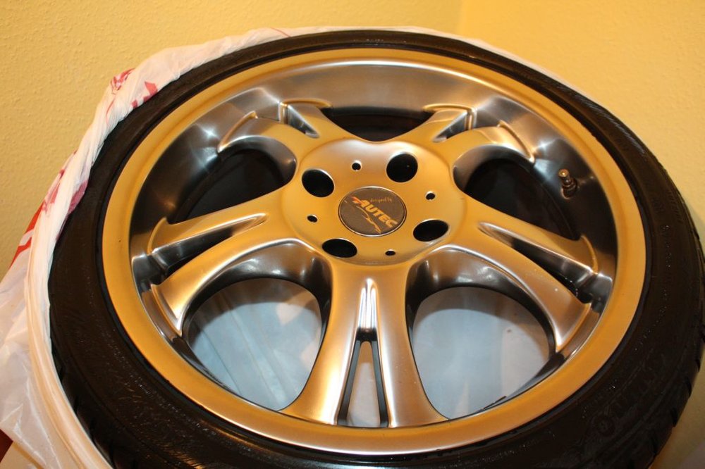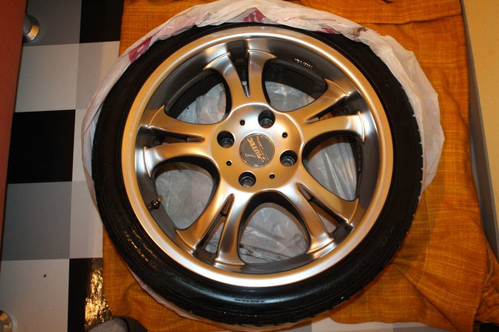 Rad 1. HL-->> 1 kleine druckstelle + 1 kratzer + von schrauben kratzer(sehe bild) Rad 2. VL-->> soweit ok nur von schrauben Rad 3. VR-->> an seite kratzer bortstein, und von schrauben Rad 4. HR-->> kratzer von bortstein,stelle an vintil,andre seite kleine kratzer Reifen: Barum 215/40 ZR17 87W Bravuris 2 E4, 0236803 Felge: Autec Typ O 757 7,5Jx17H2 Mutter M12x1,5 Lochkreis:4/114,3/64,1mm ET:40mm Radlast 600 kg Abrollumfang: 1935mm Profil sehr gut, fast neu reifen ca halbes jahr gefahren somit auch ca 1.000 km Preis: Reifen Neu : 4x103,00 reduziert im moment auf 99,95€=399,80 Preis: Felgen Neu :4 x 139,00 =556,00 bei ATU gekauft und der preis ist jetzt auch Mein Preis: 750,00€ VB Natürlich auch Teilegutachten nach § 19 stvzo Heckflügel "Shogun" für den Honda Accord "alle Limousine Modelle" Preis 150€ VB mit ABE, braucht man nicht eintragen, zustand super keine Beschädigungen, Platzstellen keine kratzer mit Befestigunsmaterial Reifen und Shogun spoiler an Selbstabholer einfach an pn Domstrebe (sehe Bilder am anfang) für 35 € + 5 € Versankosten sofort zu haben -