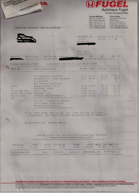 22. Hey leute ich hab da mal eine Frage! Ist dieser Preis für eine kleine Durchsicht gerechtfertigt oder eher nicht? Hab mal die Rechnung als Anhang mit gesendet...schaut mal drüber. Danke im vorraus