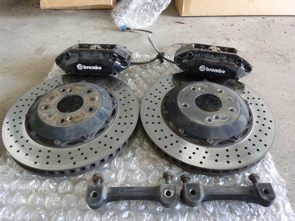 So, wurde alles ausgebaut und kann jetzt jederzeit verschickt werden. Hier noch die Fotos in ausgebautem Zustand, auf den Fotos fehlen nur die hinteren Stahlflexleitungen von Stoptech, sind aber im Paket erhalten. Die Bremsbeläge reichen noch für ca 20tkm und die Bremscheibe ist auch noch 26,8mm dick, ich bin damit schon ca 60tkm gefahren, also sind es noch weitere 50tkm locker drin. Die hinteren Bremscheiben sind noch fast wie neu