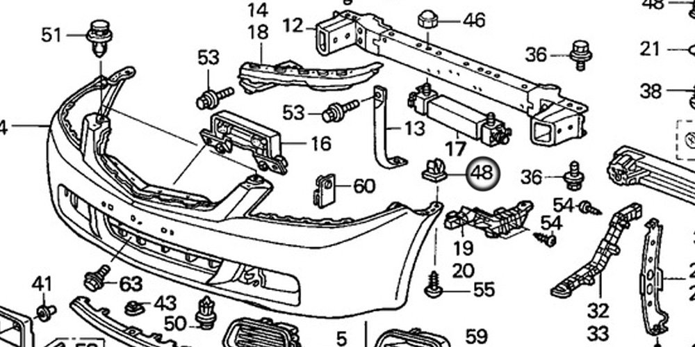 meinst du front stossstange? die ecken etwas nach unten drücken und dan geht sie auch weiter rein. sie kommt gegen das plastikteil (auf foto nr 48 ), das teil ist unten rund und muss ins loch (in die stossstange) rein. -