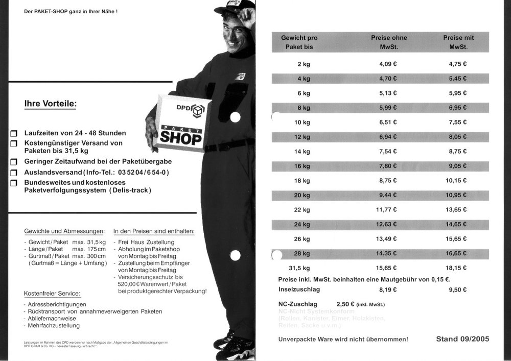 bei dpd kommt es mehr auf das gewicht an. (siehe bild) es gibt auch einen versandrechner wichtig sind halt die abmessungen. hab damals für den versand einer heckschürze bei dhl ca. 25€ bezahlt.