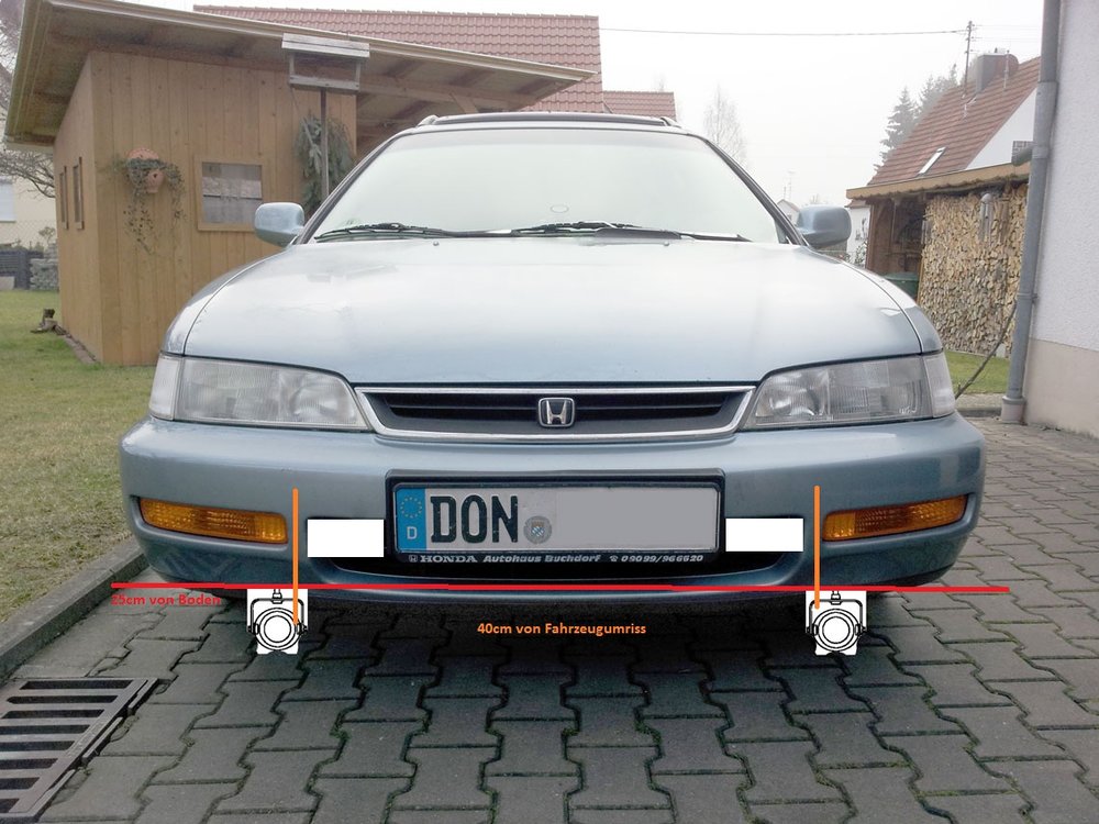 halo kardynau danke für deine antwort/deinen vorschlag schon mal. ich hab mich letztens eingelesen in die NSW-Voraussetzungen vom TüV... die meinen "mind. 25cm über dem Boden..." dann wird das leider nichts mit unten hinschrauben :( wäre ja auch zu einfach. wegen der Lichter, also die Leuchtmittel an sich sind letztes Jahr getauscht worden, wobei die linsen/gläser schon verkratzt/innen dreckig sein könnten. kann man die innen irgendwie putzen? Vielen Dank auch für den Link. Werde mich da mal umschauen :) was das TüV-dokument auch meinte, ist, dass man sie theoretisch auch weiter innen als 40cm anbringen kann, wobei sie dann nur in kombination mit abblendlicht brennen dürfen. Drum hab ich da jetzt die Idee sie wie im Bild zu sehen, anzubringen. Vielleicht findet sich ja was passendes. Wegen fernlicht anschalten... da leuchtet ja auch eher nach vorn als zur seite ;) viele grüße -