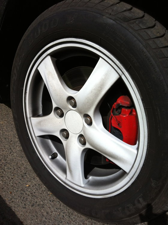 Mittlerweile nach einer Woche und ca. 400 km sehen die Felgen schon so aus: Das sind die vorderen - die hinteren sind etwas sauberer