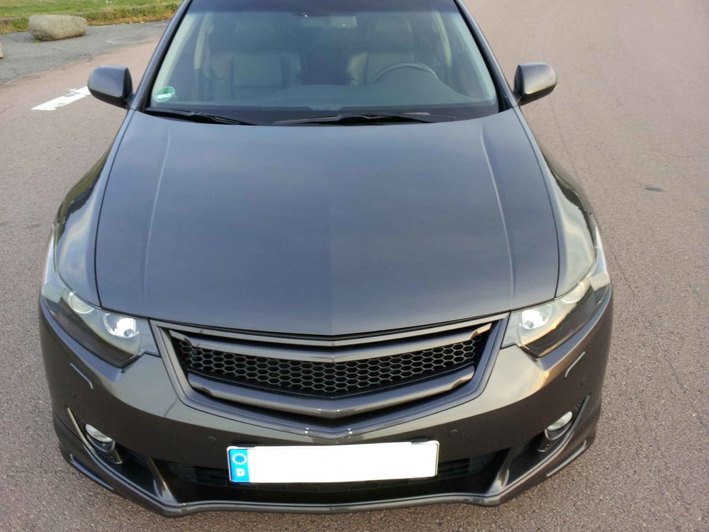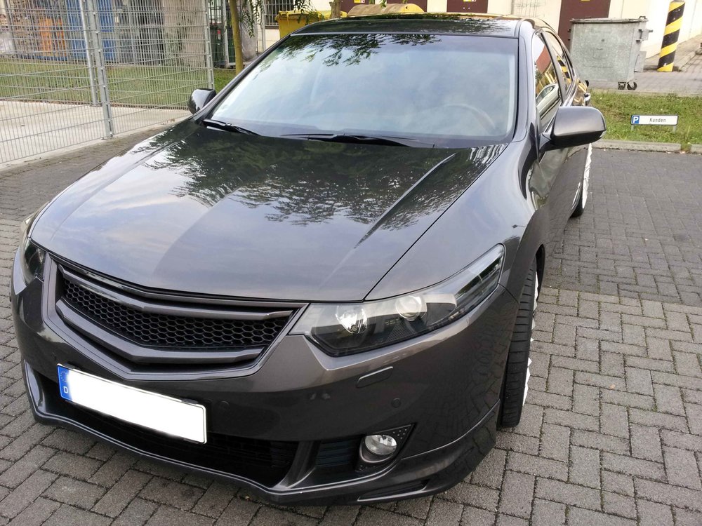 Hallo ihr, hab mich dazu entschieden, dass ich meinen Grill verkaufen möchte. Hatte nach 2 Jahren mal Lust auf was anderes. Einige kennen ihn, wer nicht kann sich hier in meinem Vorstellungsthread belesen/bestaunen. http://www.accord2008.net/viewtopic.php?f=51&t=3705&start=15 Hier erst mal ein Teaser http://www.accord2008.net/download/file.php?id=8375&t=1 Es handelt sich also um einen modifizierten Original Grill des Accord Typen CU/CW ab '09 Prefacelift !!! Die mittlere Strebe samt Hondaemblem wurde entfernt und dahinter ein Renngitter gesetzt. Einfach dort mal die ersten Seiten lesen und Bilder gucken. Dort habe ich auch erklärt, wie ich das Gitter fest gemacht habe. Falls der oder die jenige es austauchen möchte. Ich bin aber überrascht, dass es selbst nach zwei Winter gar nicht so dreckig aussieht. Liegt vielleicht am Material, Kunststoff mit einer sehr glatten Oberfläche, wahrscheinlich hafte da kaum Dreck dran. Ich hab vom Zuschneiden des Gitters noch ein großes Stück übrig. Das müsste meiner Einschätzung nach noch für ein zweites Mal reichen, das würde ich noch dazu packen. Ist aktuell in volcano grey lackiert, müsste aber aufgrund einiger Macken mal neu gelackt werden. Der VK von dem ich den Grill damals erstanden habe, hatte mir leider verschwiegen, dass einige einige Haltepunkte abgebrochen waren. Ich hatte damals versucht, diese wieder einzukleben, gehalten hat das aber nicht. Also habe ich eine diese Haltepunkte statt der Schraube einfach mit einem Kabelbinder fixiert und ein zwei weiteren Stellen die Schrauebn einfach an anderen Stellen in das Kunststoff der Frontschürze geschraubt. Alles natürlich nicht im sichtbaren Bereich. Hält wie Bombe. Ich wollte dies der Fairness erwähnen. Probleme sehe ich damit keine, bin ja so zwei Jahre rumgefahren. Wechsle den Grill nur, weil ich mal Just auf n anderen Look hatte. Ich gebe den Grill für 50,- her, wobei das bei weitem nicht das ist, was er mich alles in allem gekostet hat, aber das ist ja bei Tuning oft so. Grüße Beast