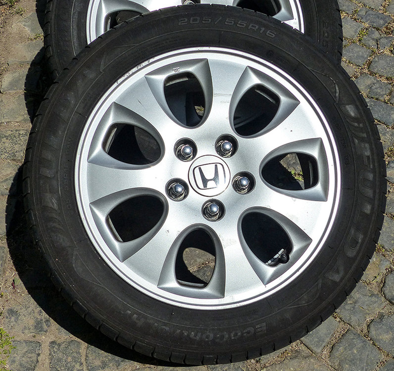 Hallo liebe Forum-Freunde, leider musste ich meinen über die 13 Jahre geliebten Accord (2,2 i-ctdi / Baujahr 2006) nach 560.000 km zum Verwerten abgeben. Übrig geblieben sind die 4 x Original Alufelgen (16 Zoll / 5-Loch) mit Original-Radmuttern. Darauf sind Sommerreifen (205 / 55 7 R16) montiert: 2 x Fulda EcoControl HP / Herstellungsdatum Woche 12 - 2018 / DOT 1218 / Profil noch ausreichend 2 x Michelin Primacy / Profil nicht mehr ausreichend Wenn jemand aus dem Accord-Forum interessiert ist, bitte melden. Preisvorstellung: 199 € / Verhandlungsbasis Nur Abholung in 56412 Niedererbach (bei Limburg, zwischen Frankfurt und Köln) Viele Grüße, euer Steli