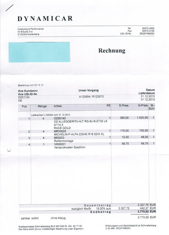 Verkaufe OZ Alleggerita HLT Race Gold in 8x18 ET35 LK5x114,3 + 225/40R18 92W XL Michelin Pilot Alpin PA4 Reifen Sowohl Felgen als auch Reifen sind nagel NEU. Hab sie damals (31.12.2012) extra in der 92W Ausführung für den Evo 9 gekauft, aber nie benutzt. Sind keinen Meter gefahren worden. Neupreis siehe beigefügte Rechnung! Würde die komplett für 2500 inkl. Versand abgeben.