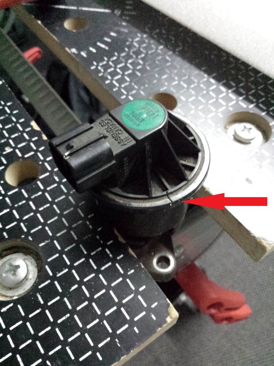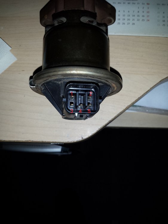 Hallo liebe Gemeinde, wegen Fehlercode P0401 habe ich mein AGR-Ventil ausgetaucht. Dann habe ich das ausgebaute Ventil zerlegt, um zu schauen wie es Aufgebaut ist und wie es funktioniert. Zuerst musste ich den Metallring durchsägen: Dann Metallring abziehen und Unterteil und Oberteil trennen. Dann kommt man an die Schraube mit der man das Ventil losschrauben kann: Ventil kann man auf der Unterseite mit einem Imbusschlüssel gegenhalten: Dann kann man das Ventil herausnehmen und alles saubermachen: Hab auch mal die elektrischen Verbindungen durchgemessen: Den Deckel kann man leider nicht zerstörungsfrei abnehmen: 1-2: (Magnetspule) 8 Ohm 3-4: 4800 Ohm 4-5: Ventil geschlossen: 370 Ohm 4-5: Ventil offen: 4950 Ohm (max) Viel Spass :-)