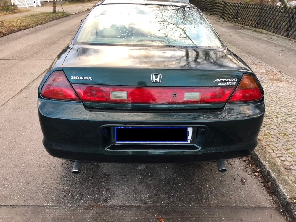 Hallo Zusammen,ich biete mein Honda Accord Coupe CG2 3.0 V6 Vtec zum Verkauf. Farbe: Dark Emerald Green Metallic, Interior: Beige/Steingrau, Baujahr 1999.Das Fahrzeug ist sehr gut gepflegt und ist dem Alter von 23 Jahren entsprechend in sehr gutem Zustand. Das Leder in Sitz und Türverkleidung ist abgesehen von einem Riss an der Fahrersitz-Wange, in sehr gutem Zustand.Alle Accord-typischen Roststellen an Radläufe, Kotflügel etc. sind ohne Befall und die Radläufe wurden 2019 von einer Fachwerkstatt versiegelt.Der Wagen ist aktuell mit Winterreifen (Profil noch für diese Wintersaison) auf original Honda-Felgen bereift. Sommerreifen (auf Borbet-Felgen) kann ich dazu geben.Kilometerstand ist 263.000.Generell: Flüssigkeiten, Motor-Öl + Filter etc. wurden regelmäßig gewechselt, zuletzt im Sommer 2022. (Rechnungen seit meinem Besitz komplett vorhanden, Rechnungen der Vorbesitzer liegen zum Teil vor).Die letzten TÜV Abnahmen hat der Wagen anstandslos bestanden. (TÜV Berichte liegen vor) Nächster TÜV ist im Februar 2023 fällig.Folgende Teile wurden zuletzt im vergangenen Sommer (2022) durch eine Young Timer Fach-Werkstatt erneuert, (insgesamt Neuteile im Material-Gesamtwert von 1.900,00 Euro, Rechnungen dazu und zu den durchgeführten Arbeiten liegen vor):Abgasanlage: beide Endschalldämpfer neu, Flansche zum Mittelstück extra angefertigt und Y-Mittelstück geschweißt und neu verzinkt.Traggelenke der unteren Querlenker VorderachseQuerlenker oben und unten rechts und links erneuert inkl. Führungsgelenken und Uniball-GelenkenBremsflüssigkeit erneuertStabilisatoren vorne und hinten erneuert, mitsamt Komponenten und Lagergummis sowie KoppelstangenWasserkühler und Automatikkühler mitsamt Nebenteilen sowie Ölkühlerleitung erneuertKraftstoffleitung erneuertABS / Drehzahl-Sensoren auf beiden Seiten erneuertEine Fahrzeug-Achsvermessung inkl. Einstellarbeiten, Laser-Spur-Vermessung wurde vorgenommen, alles ok (Bericht liegt vor)Dezember 2022 Zündkerzen mitsamt Sumpf und Kappe erneuert.Wichtig: Der Motor hat einen möglichen Motorschaden aufgrund eines übergesprungenen Zahnriemens. Genaue Diagnose nach durchgeführter Druckverlustprüfung hat ergeben, dass eine starke Beschädigung von Ventilen, auszuschließen ist, jedoch zwei der sechs Zylinder leichten Druckverlust haben.Hintergrund: Alle Zahnriemen- und Steuer- Komponenten außer der Spannrolle wurden regelmäßig gewechselt - dieser Spannungsgeber (die Einsteller-Einheit, Spanneinheit mit Rolle und Hebel) sowie die automatische Stelleinrichtung (der eigentliche Spanner), war dabei Auslöser für das Überspringen des Riemens. (Sogar die Honda Werkstätten hatten dies nicht auf dem Schirm).Der Wagen ist aktuell nicht fahrbereit, kann aber in Berlin (Zehlendorf) besichtigt werden.Ich hatte vor, das Fahrzeug bis zum Oldtimer und darüber hinaus zu fahren, gebe es nun jedoch ab, da ich arbeitsbedingt zeitlich als Selbstständiger und platztechnisch nicht die Ressourcen habe, es als Projekt weiter zu führen.Da immer gut gepflegt und entspannt gefahren, möchte ich den Wagen mitsamt seinen sonst gut funktionierenden Komponenten in die Hände von Schraubern und Honda-Freunden geben, die das Fahrzeug oder Teile davon für ihr Fahrzeug nutzen können.Preis: 1.000,00 Euro.Bei Fragen, einfach kontaktieren.Verkauf des Fahrzeugs als Ganzes. Da es sich um einen Privatverkauf handelt, kann ich weder Garantie noch Gewährleistung geben.